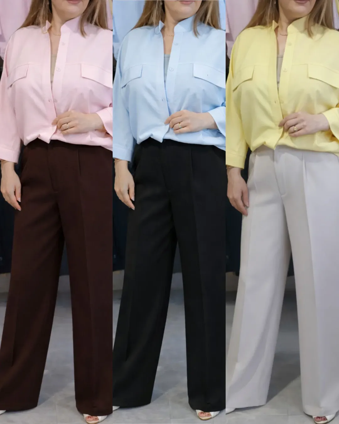 شلوار بگ کرپ مازراتی؛ همون مدلی که قد رو بلندتر نشون میده و استایل رو تمیز و مرتب پارچه کرپ مازراتی با ایستایی شیک جلو زیپ و دکمه | کمر پشت کش راحتی و فیت همزمان قد: ۱۰۵ سانتیمتر سایز ۱: مناسب ۴۰ تا ۴۶ سایز ۲: مناسب ۴۶ تا ۵۰ رنگبندی: قهوهای | کرم استخوانی | مشکی